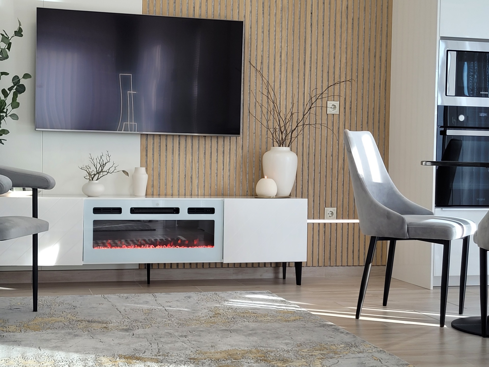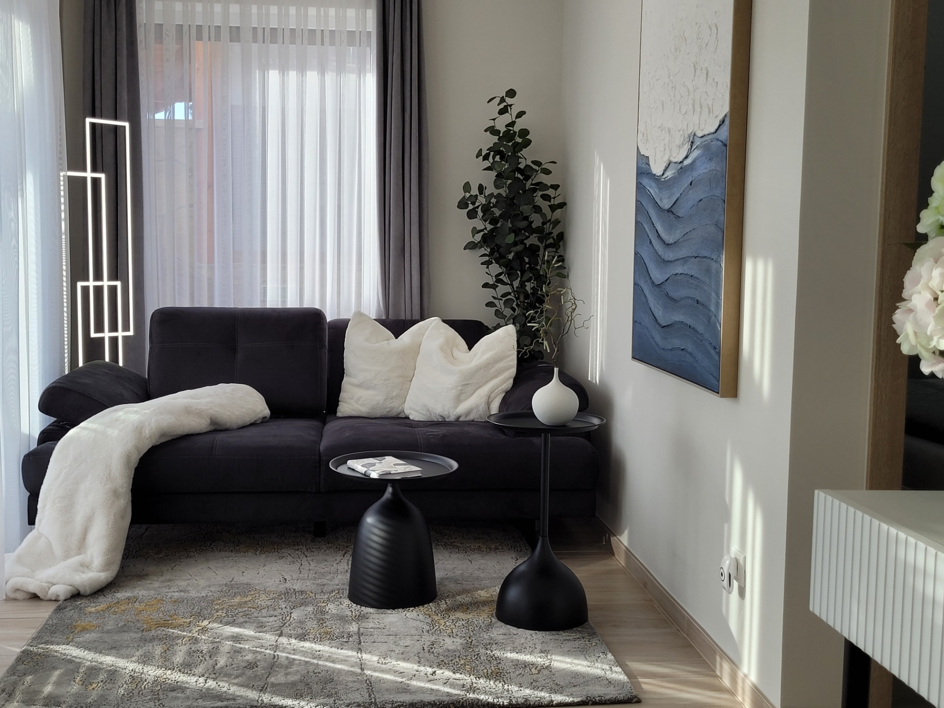 - Nappaliban a kényelemről kanapé, távirányítással működtető redőnyök, árnyékolók, klíma, fűtőpanelek, kandalló a kikapcsolódásról Samsung Qled 4K Smart Tv, bluetooth, Netflix, wifi,könyvek, társasjátékok gondoskodnak.