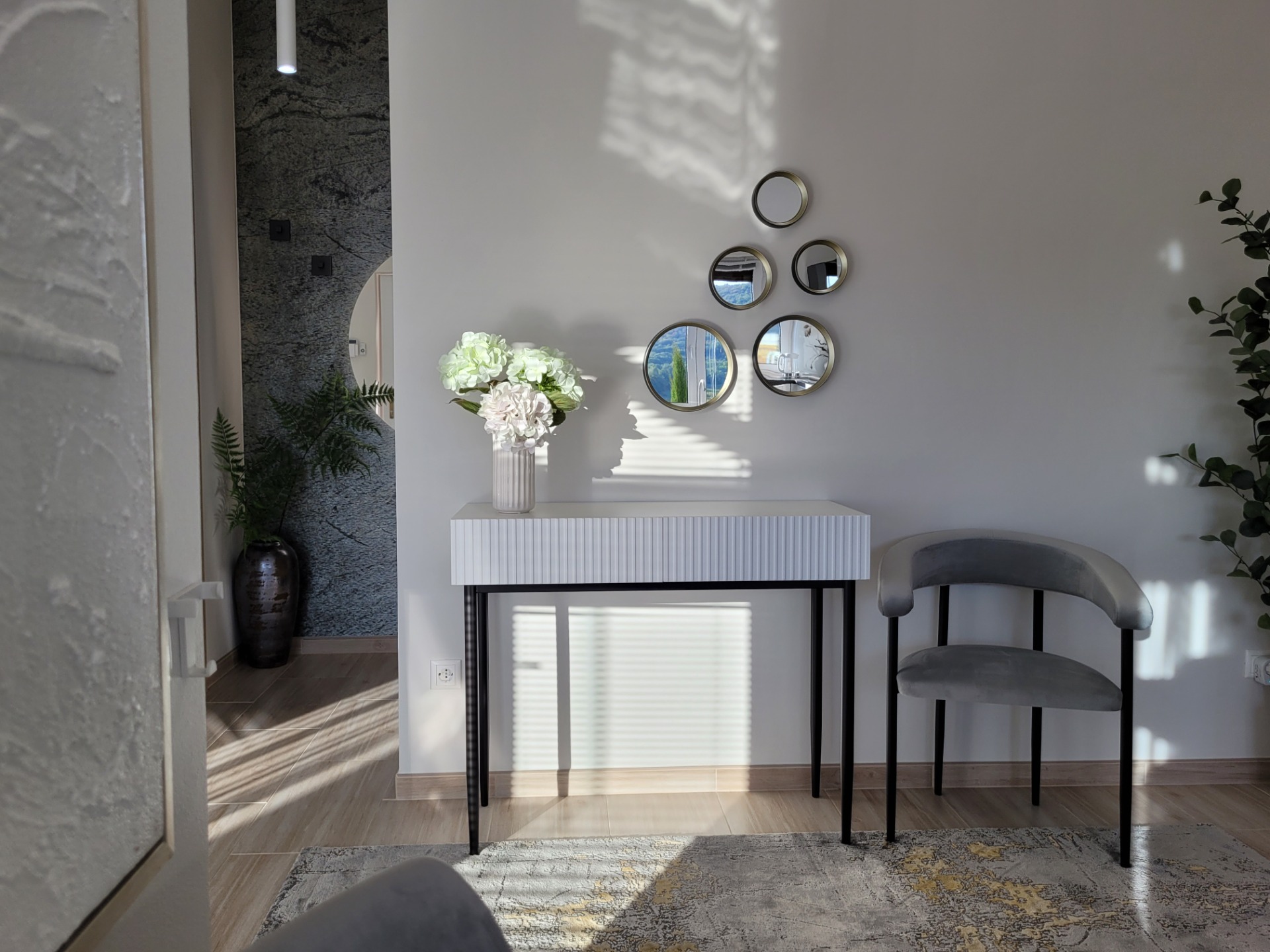 - A hálószobában The frame Full HD Smart Qled tv, beépített gardróbszekrény és a pihentető alváshoz kényelmes ágy minőségi matrac és friss ágynemű.