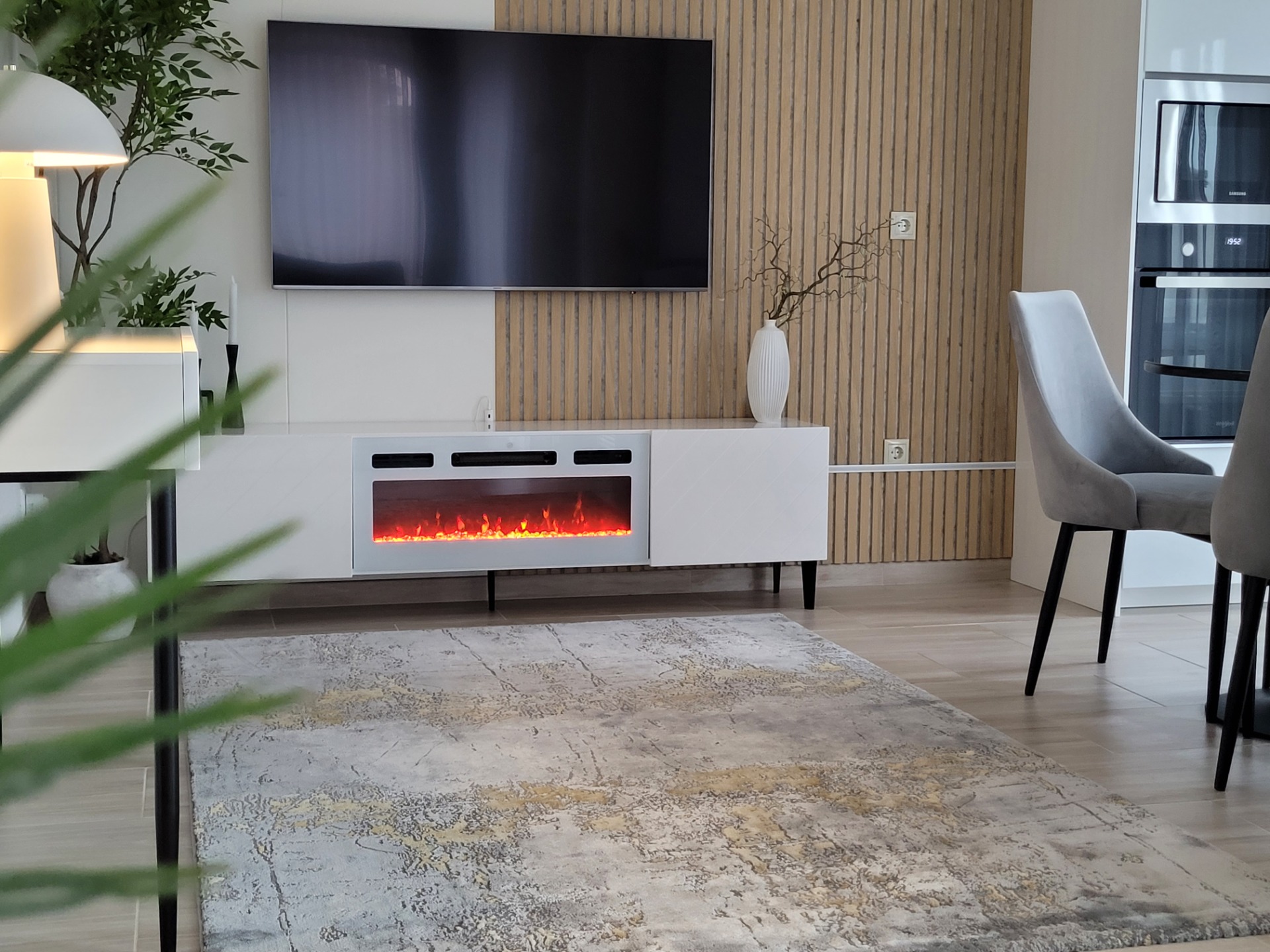 - Nappaliban a kényelemről kanapé, távirányítással működtető redőnyök, árnyékolók, klíma, fűtőpanelek, kandalló a kikapcsolódásról Samsung Qled 4K Smart Tv, bluetooth, Netflix, wifi, könyvek, társasjátékok gondoskodnak.