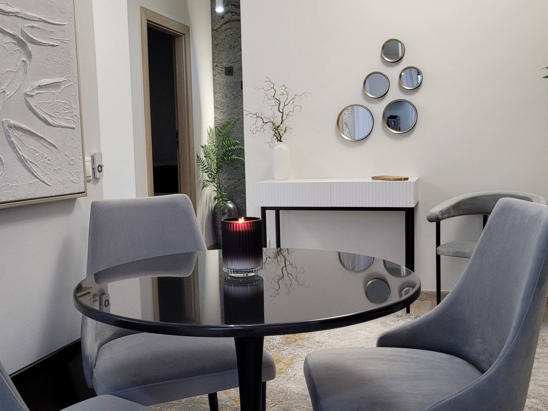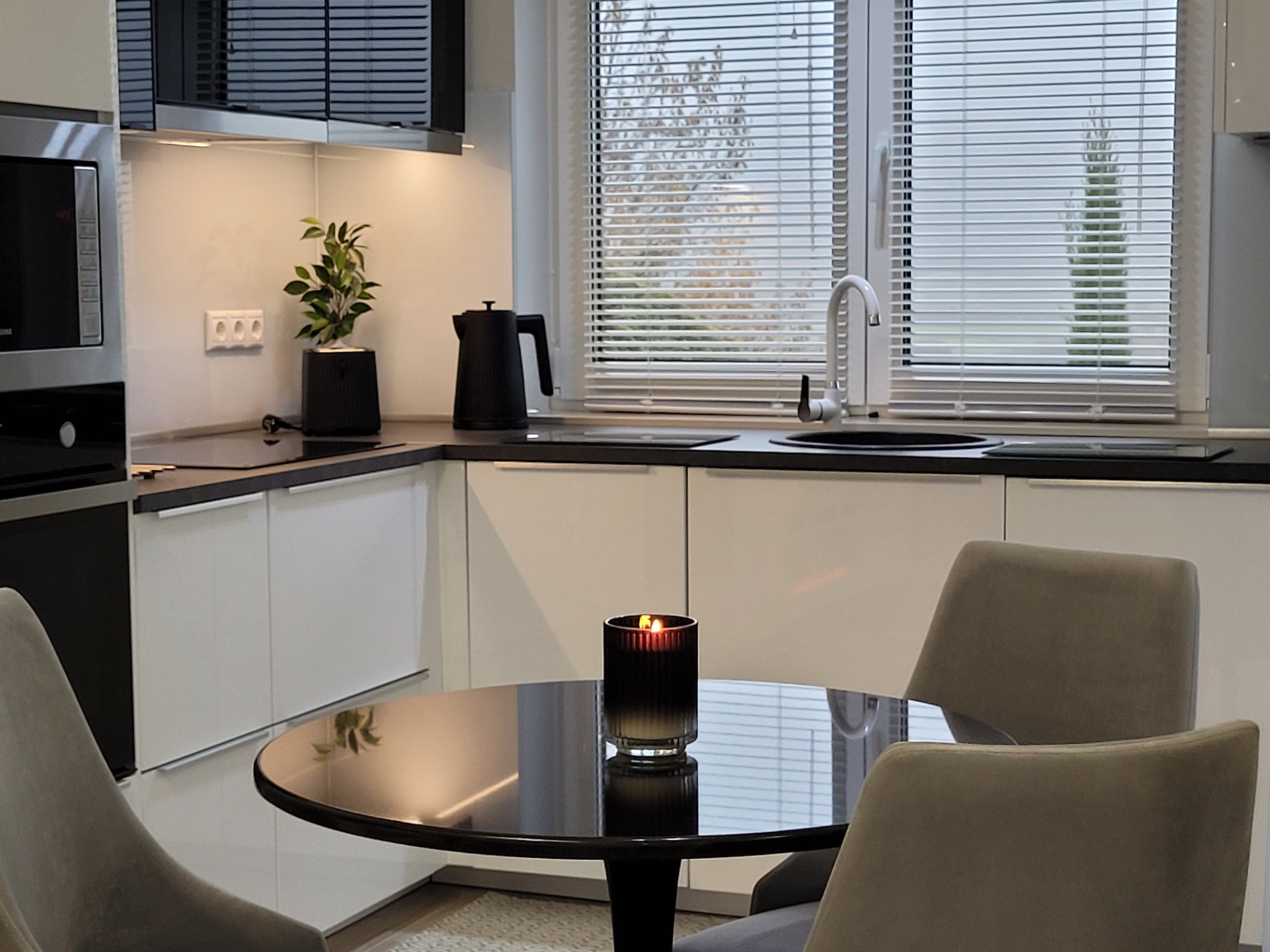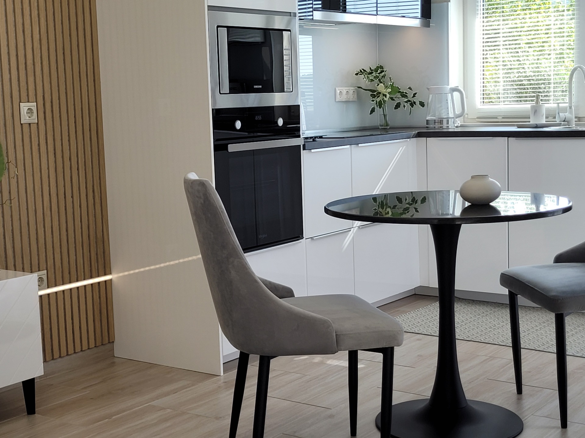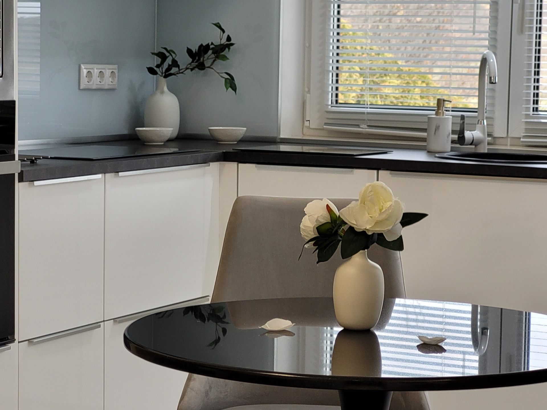- Gépekkel felszerelt konyha (sütő, főzőlap, hűtő, mikró) automata kávégép, vízforraló, kenyérpirító,