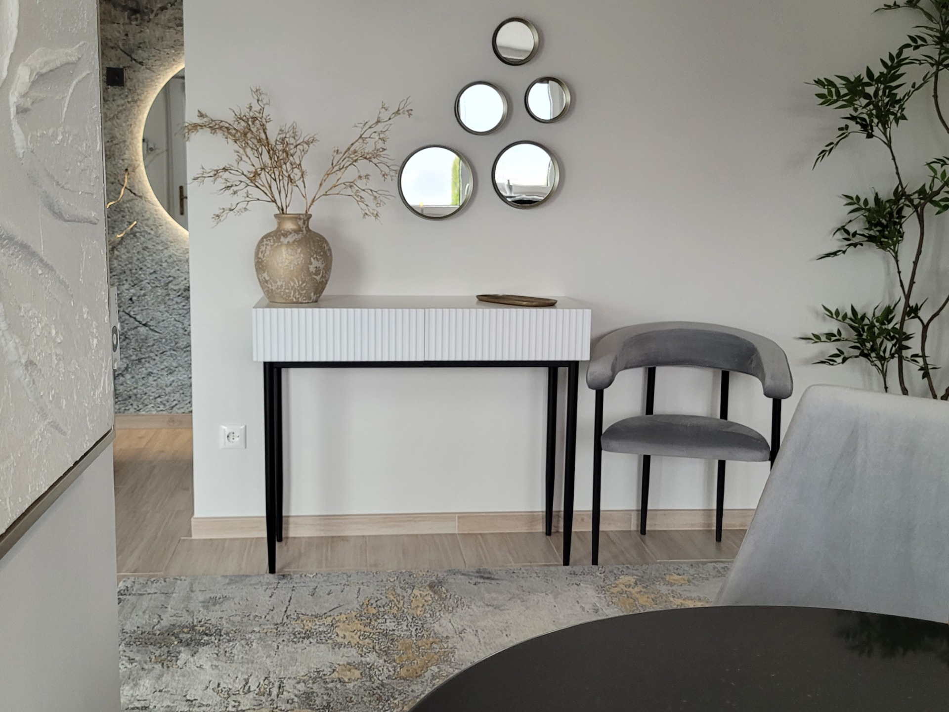- A hálószobában The frame Full HD Smart Qled tv, beépített gardróbszekrény és a pihentető alváshoz kényelmes ágy minőségi matrac és friss ágynemű.