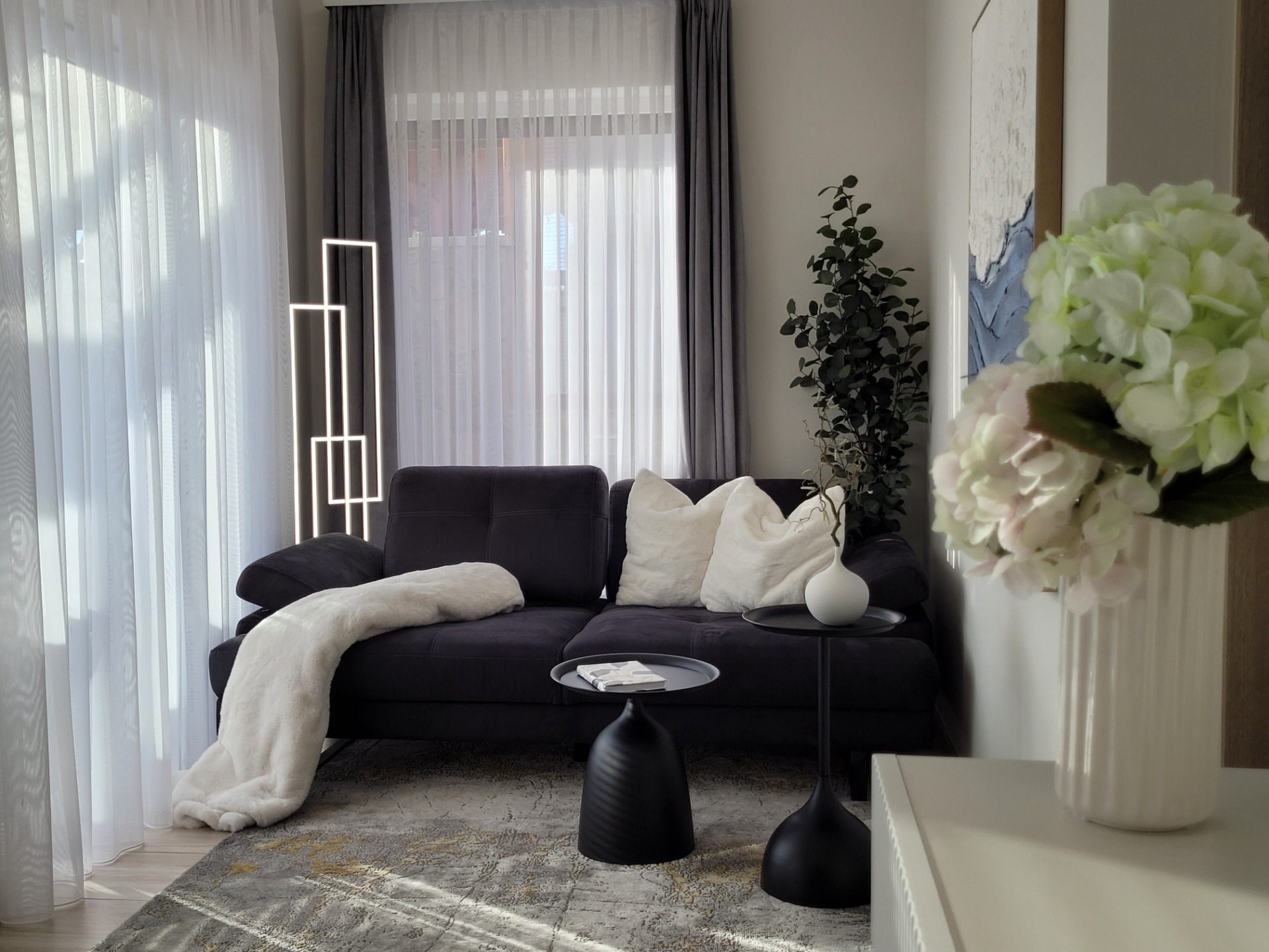 - Nappaliban a kényelemről kanapé, távirányítással működtető redőnyök, árnyékolok, klíma, fűtőpanelek, kandalló. A kikapcsolódásról Samsung Qled 4K Smart Tv, bluetooth, Netflix, wifi gondoskodik.