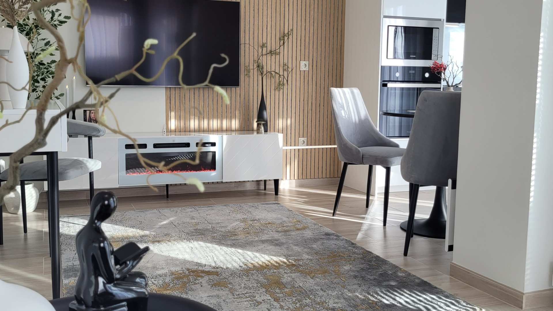 - Nappaliban a kényelemről kanapé, távirányítással működtető redőnyök, árnyékolok, klíma, fűtőpanelek, kandalló. A kikapcsolódásról Samsung Qled 4K Smart Tv, bluetooth, Netflix, wifi gondoskodik.