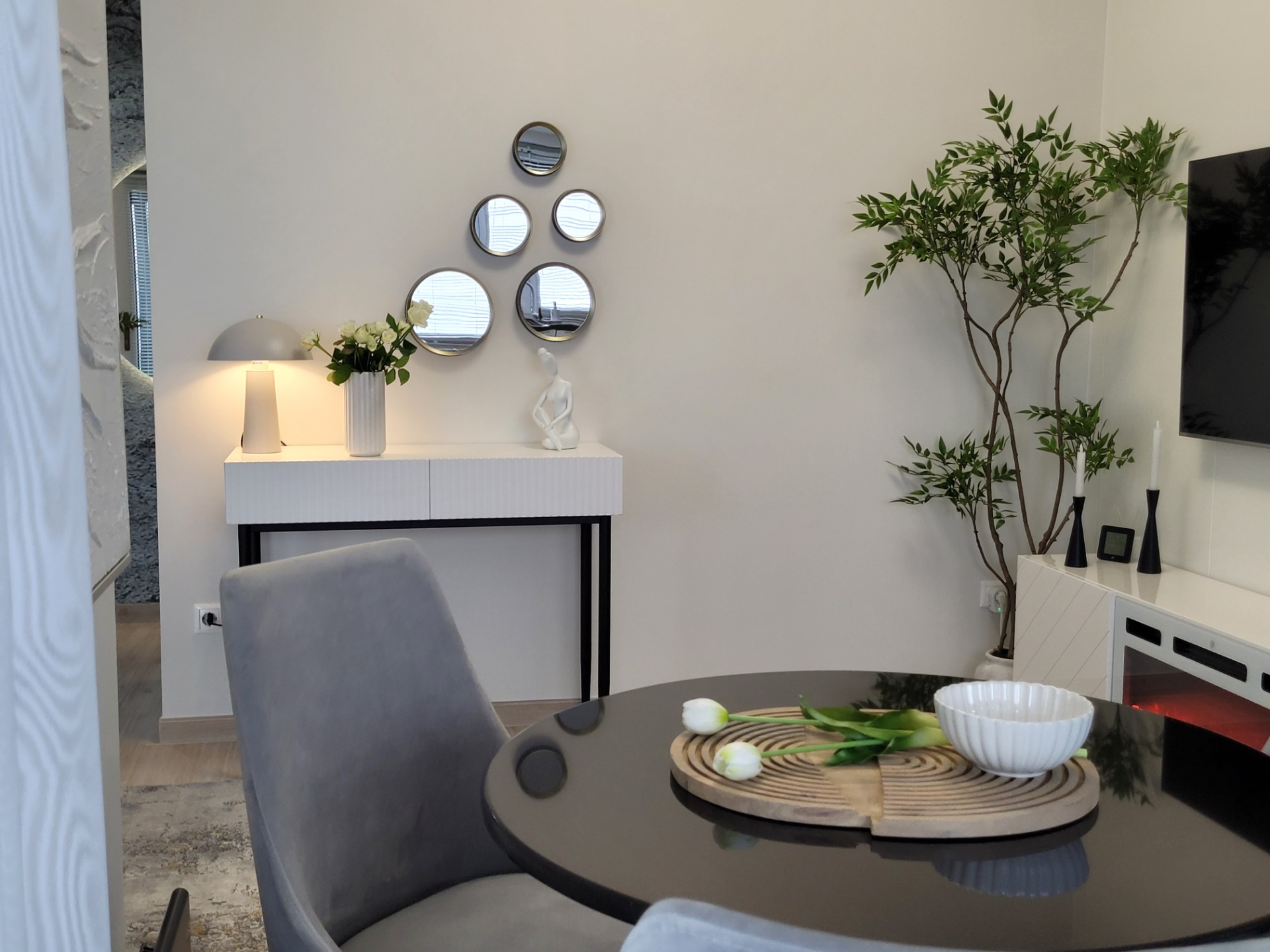 - Hálószobabán található The frame Full HD Smart Qled Tv, beépített gardróbszekrény és a pihentető alváshoz, kényelmes ágy minőségi matrac és friss ágynemű.